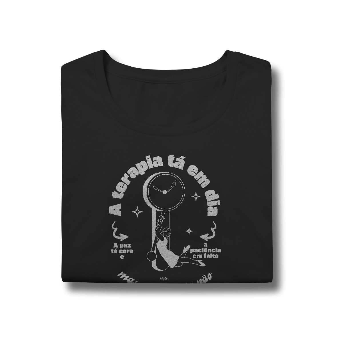 Pra quem faz terapia, mas ainda perde a paciência no trânsito, no grupo da família ou ouvindo “era só ter se acalmado”. A estampa é uma dose de bom humor com verdades: a saúde mental pode até estar em dia, mas a paciência… nem tanto!