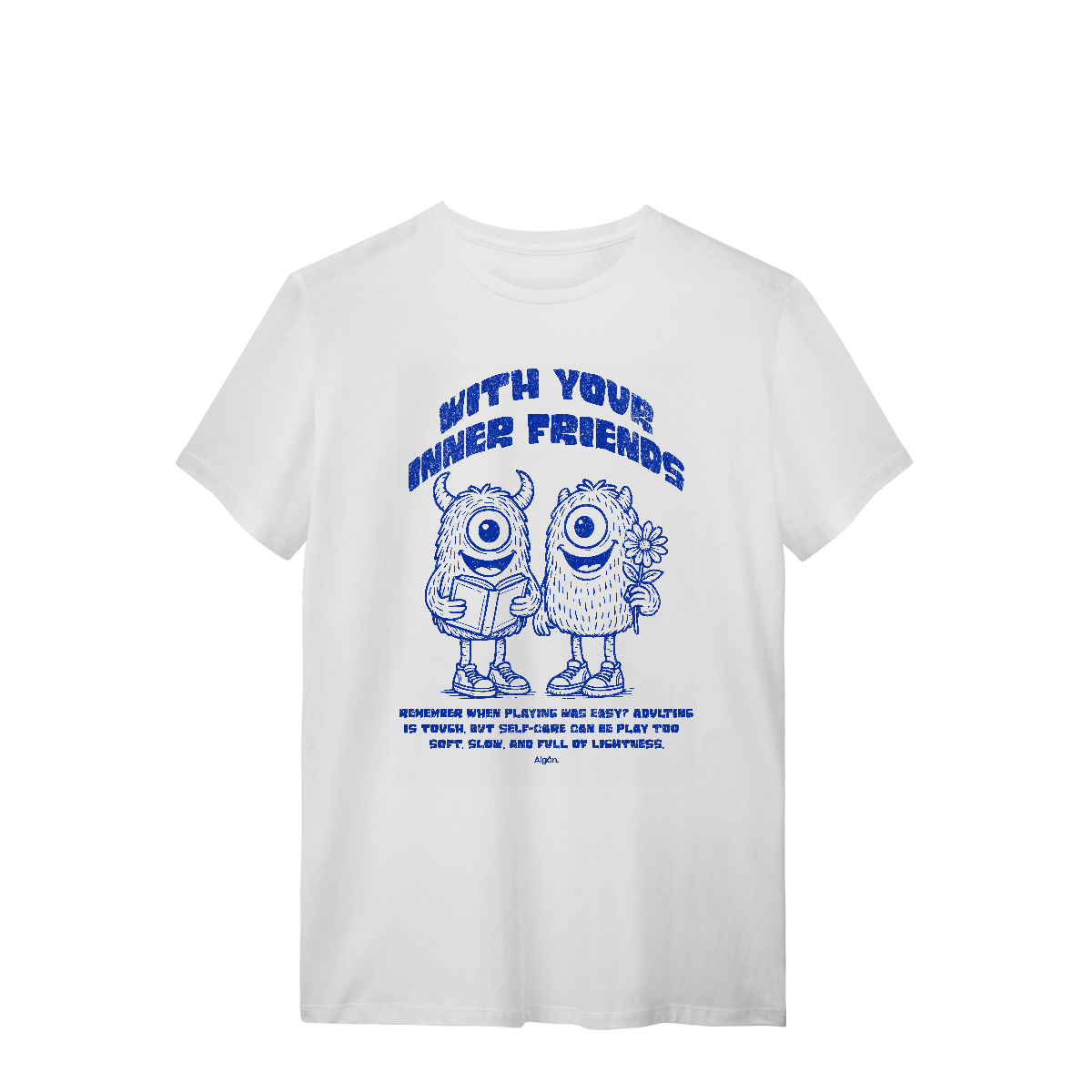 Tem dias que a gente só precisa lembrar que ainda existe infância dentro da gente. “With Your Inner Friends” é mais que uma camiseta — é um lembrete de que cuidar de si mesmo também pode ser leve, divertido e gentil. Ideal pra quem tá trilhando caminhos de autoconhecimento e precisa se lembrar: você não tá sozinho aí dentro.