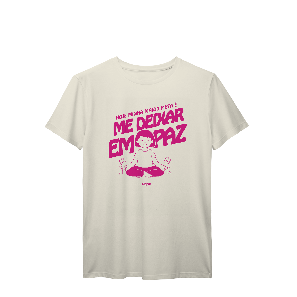 Tem dias em que a meta não é bater recorde, nem resolver tudo. A meta é simples: se deixar em paz. Essa camiseta é pra quem tá aprendendo a respeitar os próprios limites, silenciar as vozes externas e ouvir o que importa — a própria calma.